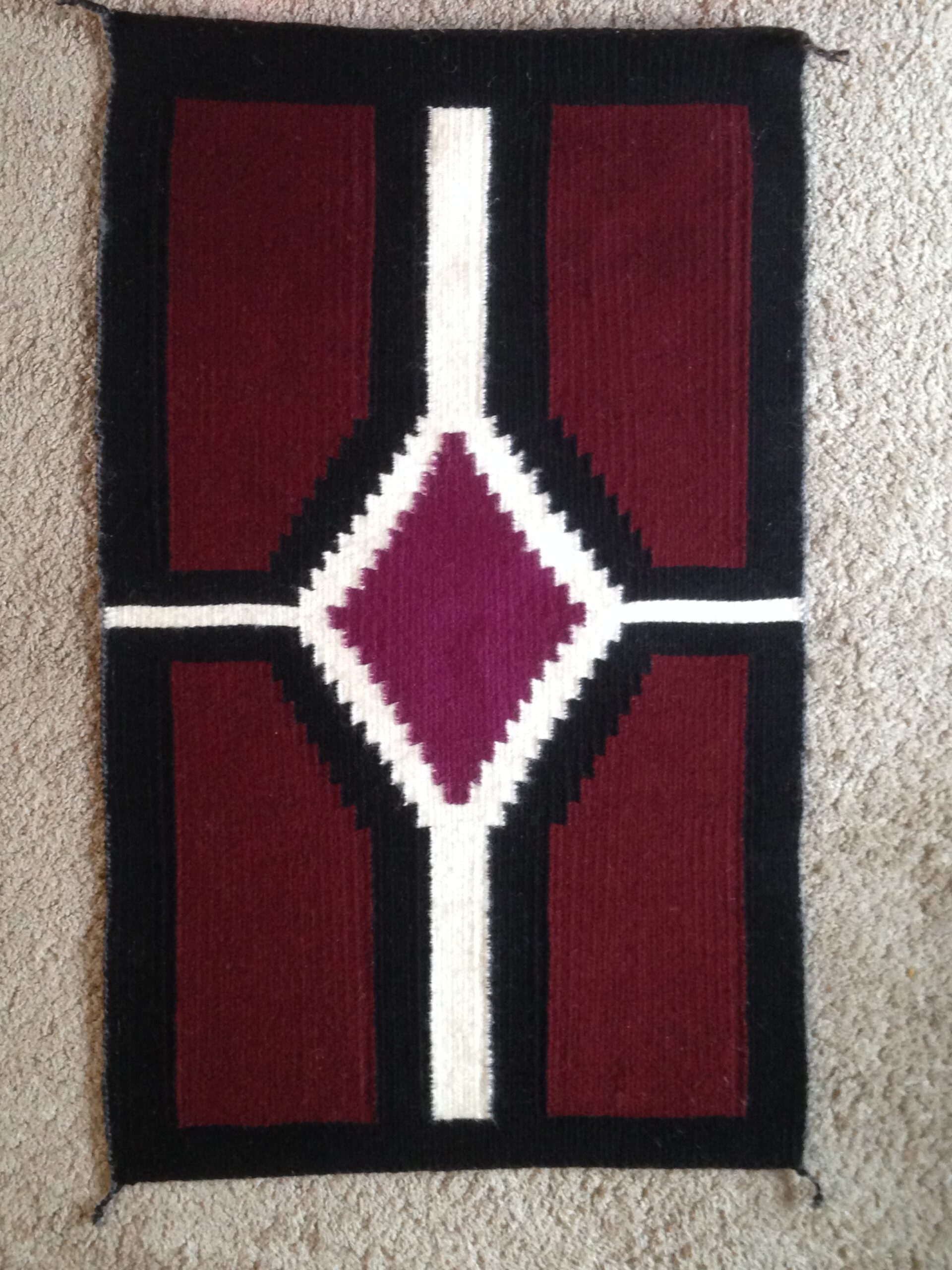 Ooit op een markt in Istanbul een blauwe kelim gezien met een bloedrode diamant. Ik vond het prachtig.